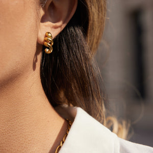 Crafted from premium stainless steel and finished with a durable 18K gold electroplating, these earrings offer a luxury look without the luxury price tag. The "chunky yet sleek" silhouette provides a bold statement while remaining comfortable enough for all-day wear.