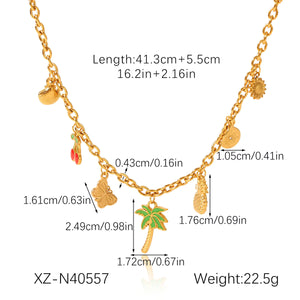 Add a touch of sunshine to your wardrobe with our 18k Gold Plated Bow Butterfly Pendant Necklace. This gorgeous necklace features a delicate bow and butterfly design with a coconut tree...