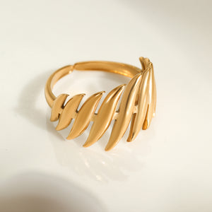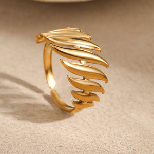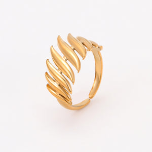 Add a touch of edgy elegance to your style with this stunning 18K gold-plated irregular shape open ring. Perfect for women who dare to be different.
