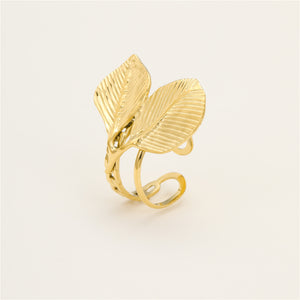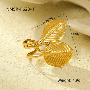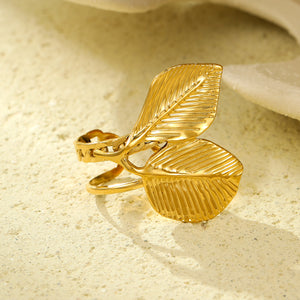 18K Gold Plated PVD Cuban Chain Leaf Ring for Women