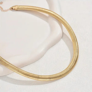 18K Gold Plated Metal Necklace with Bold Ribbed Design