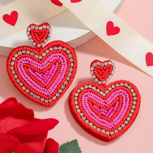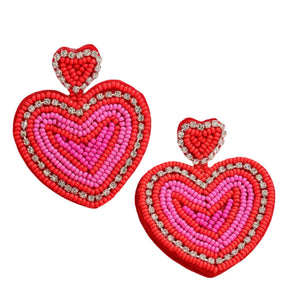 Beaded Heart Statement Earrings Double Heart Drop Style