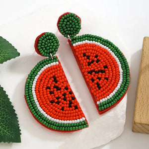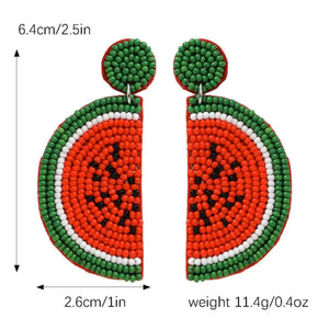 Bohemian Handmade Beaded Watermelon Slice Fruit Earrings for Women