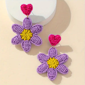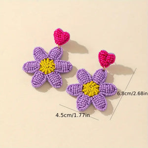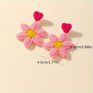 Boho-Chic Beaded Flower Drop Earrings for Women