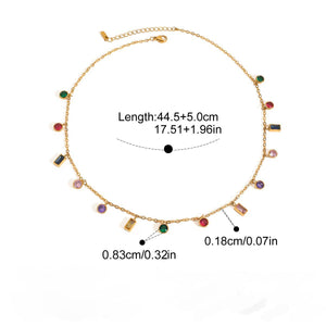18K Gold Plated Multi-Color Crystal Zircon Necklace - Anti-Tarnish Fashion Jewellery