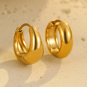 Elevate your style with these timeless 18K gold-plated stainless steel hoop earrings. Perfect for everyday wear, these trendy earrings add a touch of sophistication to any outfit.
