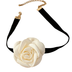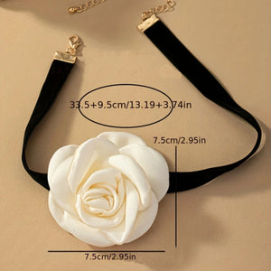 This necklace features a long rose flower collar design with an adjustable black cord, perfect for creating your own unique style. It's made of quality fabric cloth and is suitable for various occasions, including weddings, parties, and daily wear.