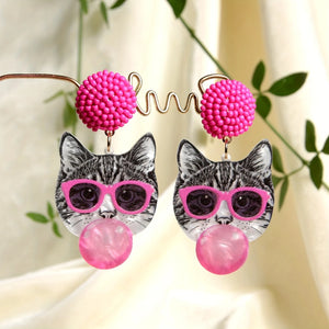 Funny Cute Creative Bubble Blowing Kitty Wearing Glasses Resin Earrings