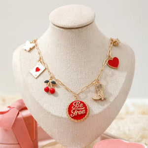 Necklace with Cherry, Heart, Butterfly & Cowboy Boot Charms