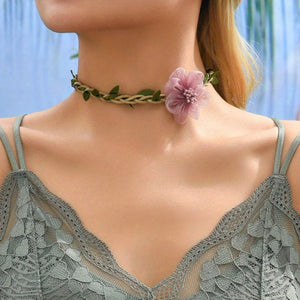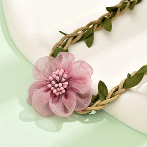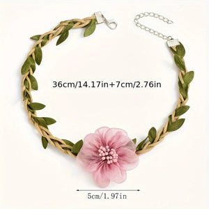 Elevate your style with this enchanting choker necklace, blending rustic charm with delicate beauty. Features a lovely pink fabric flower and natural braided jute cord with lifelike green leaves, finished with...