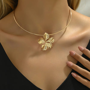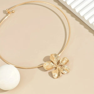 Stylish and Beautiful Metal Collar with Golden Flower Necklace