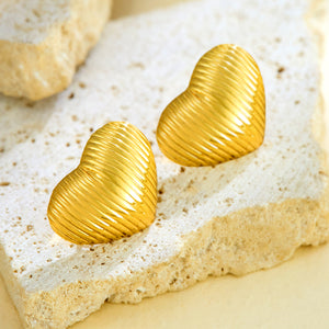 Make a statement with our Waterproof Vintage Gold Plated Love Heart Stud Earrings. Featuring a beautiful heart-shaped design with a textured finish, these earrings are made from durable stainless steel and plated with gold for a luxurious look. Ideal for those who love minimalist yet stylish jewellery.