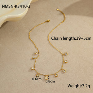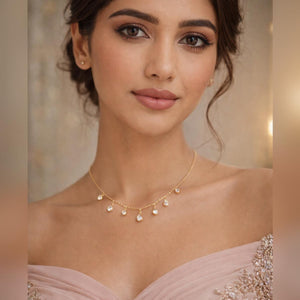 The lightweight chain sits comfortably on the neckline, while the evenly spaced stone drops create a refined, feminine appeal. Perfect to style solo or layer with other necklaces for a trendy look.