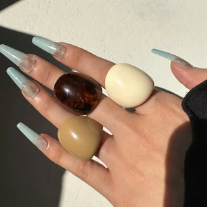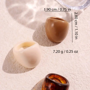 3-piece chunky dome ring set in neutral colors, featuring tortoise shell pattern and solid-colored designs. Bold statement pieces perfect for adding a touch of modern style.