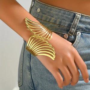 Make a statement with this exaggerated hollow wings cuff bangle. Featuring a bold, artistic design, this piece symbolizes freedom and strength while adding a touch of elegance to any outfit.