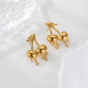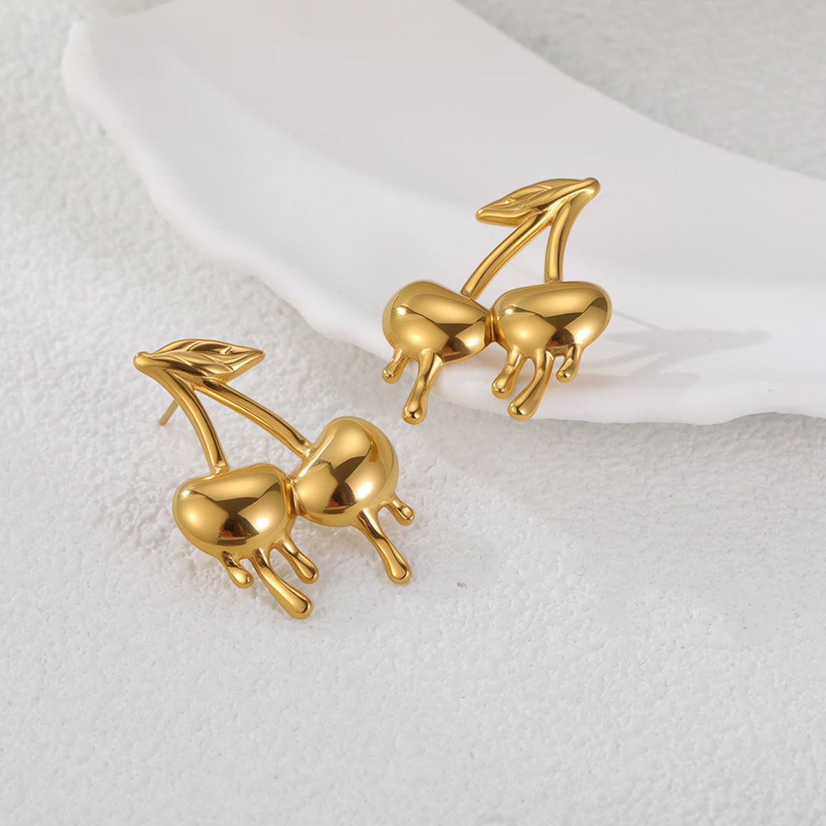 Funky 18K PVD Gold Plated Drip Cherry Stud Earrings