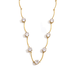 The Lyra Necklace is designed for the woman who loves understated glamour. Featuring a series of brilliant-cut Cubic Zirconia solitaires spaced perfectly along a delicate, ultra-fine bar chain, this piece creates a stunning "floating" effect against the skin.