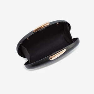 Designer PU Leather Luxury Clutch Women - Trendy Black Oval Purse