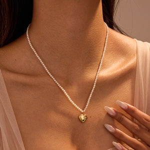 Vintage Pure White Imitation Pearl love Pendant Necklace