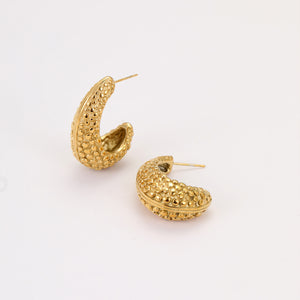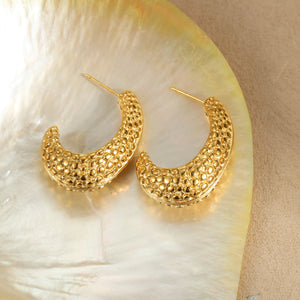 Make a bold statement with these Chunky Hammered C-Shape Earrings. Designed for the modern woman who loves a touch of vintage flair, these earrings feature a unique "hammered" texture that catches and reflects light from every angle.