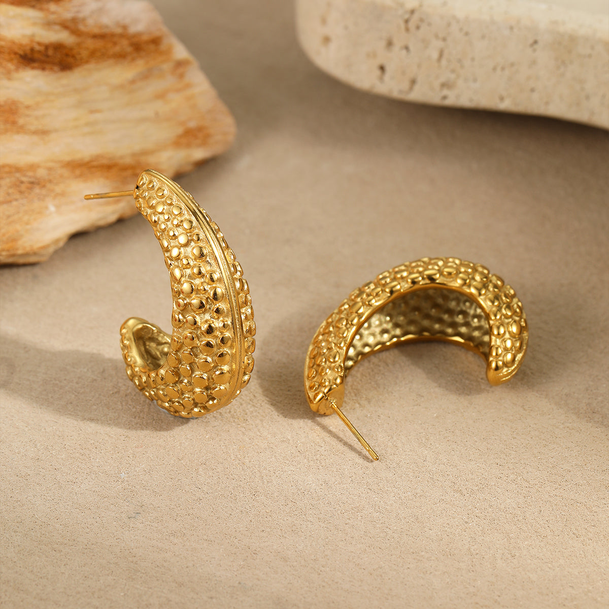 Crafted from high-grade stainless steel with a premium 18K gold plating, these earrings are built to last. They are completely waterproof and tarnish-resistant, making them the perfect accessory for beach days, summer parties, or daily wear. Their lightweight yet substantial silhouette offers a "quiet luxury" aesthetic that pairs perfectly with both casual linen outfits and elegant evening wear.
