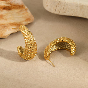 Chunky 18K Gold Plated Hammered C-Shape Earrings for Women