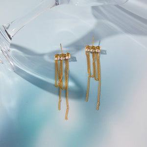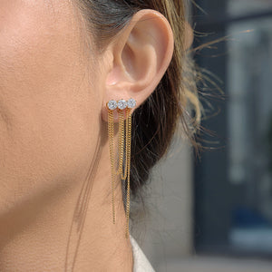 18K Gold Plated Round White Zircon Chain Tassel Earring