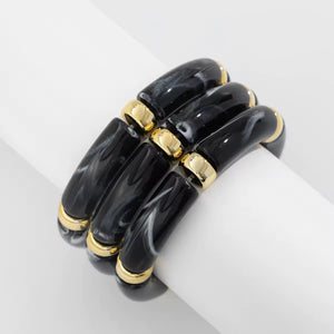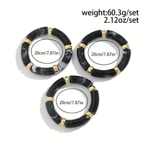 3pcs Boho-Chic Chunky Bamboo Tube Bead Bangles - Stretchable(Black)