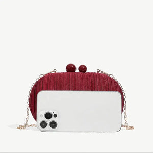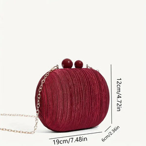 Shine bright with this luxurious oval clutch featuring textured fabric and a detachable shoulder strap. Perfect for adding elegance to any evening look. Elegant Oval Design – Unique oval silhouette wrapped...