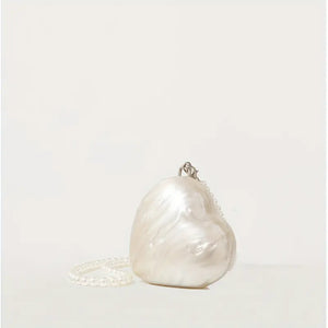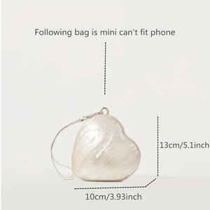 Mini Heart-Shaped Acrylic Clutch Bag for Women with Removable Beaded Strap