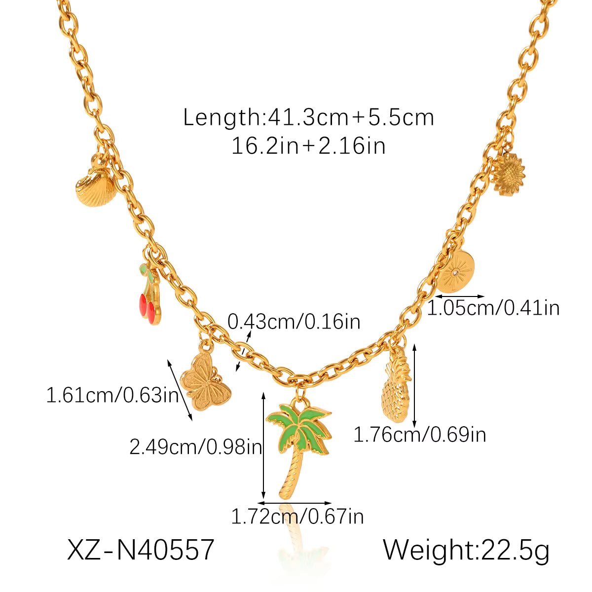 Add a touch of sunshine to your wardrobe with our 18k Gold Plated Bow Butterfly Pendant Necklace. This gorgeous necklace features a delicate bow and butterfly design with a coconut tree...