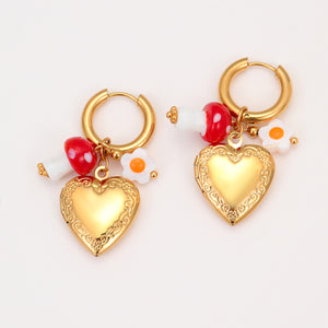 18K Gold Plated Heart Locket Hoop Earrings for Women