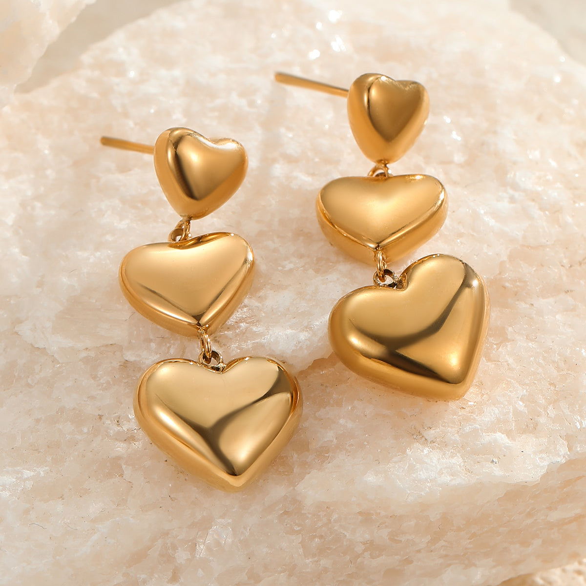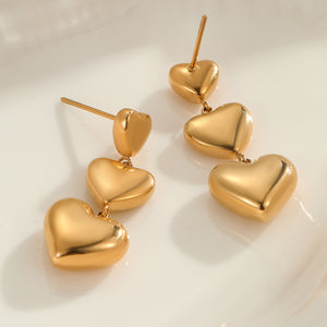 18K Gold Plated PVD Three Layers Long Heart Earrings for Women
