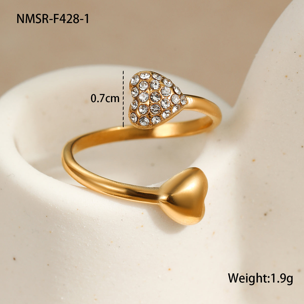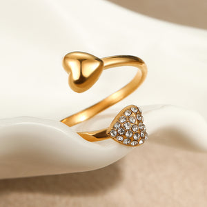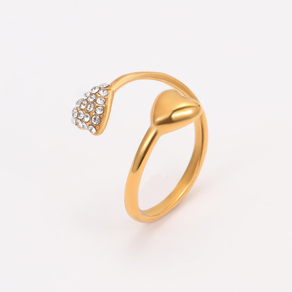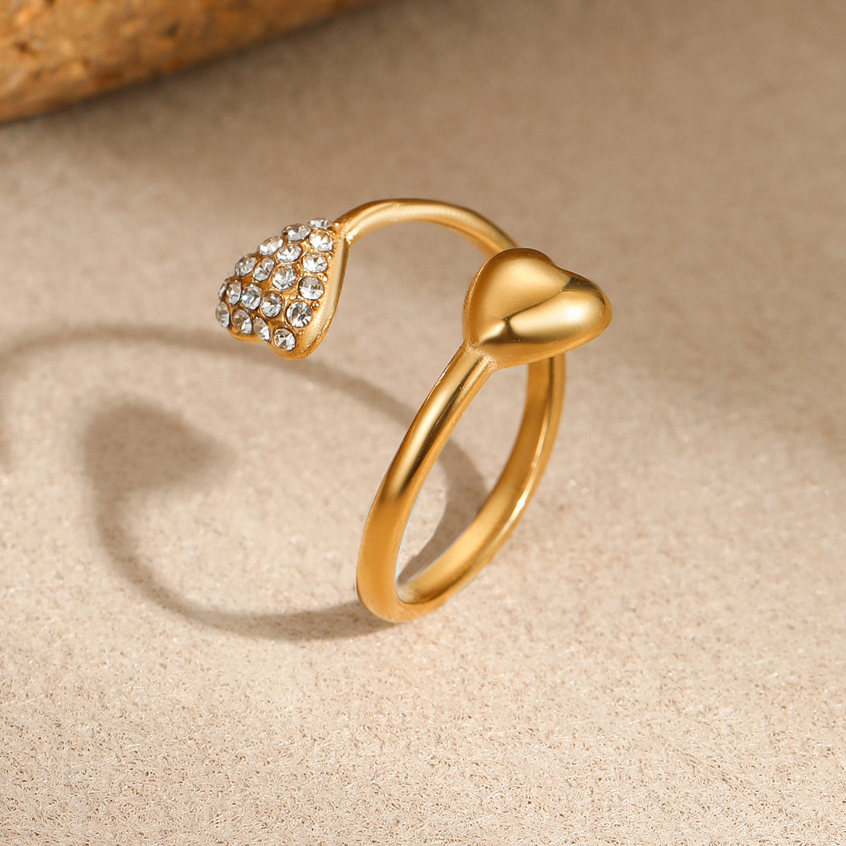18K Gold Plated Stainless Steel Asymmetric Rhinestone Heart Ring