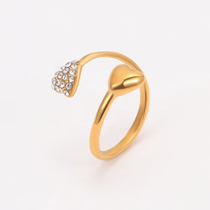 Add a touch of elegance to your style with this stunning 18K gold-plated stainless steel ring, featuring an asymmetric heart shape design adorned with sparkling rhinestones.