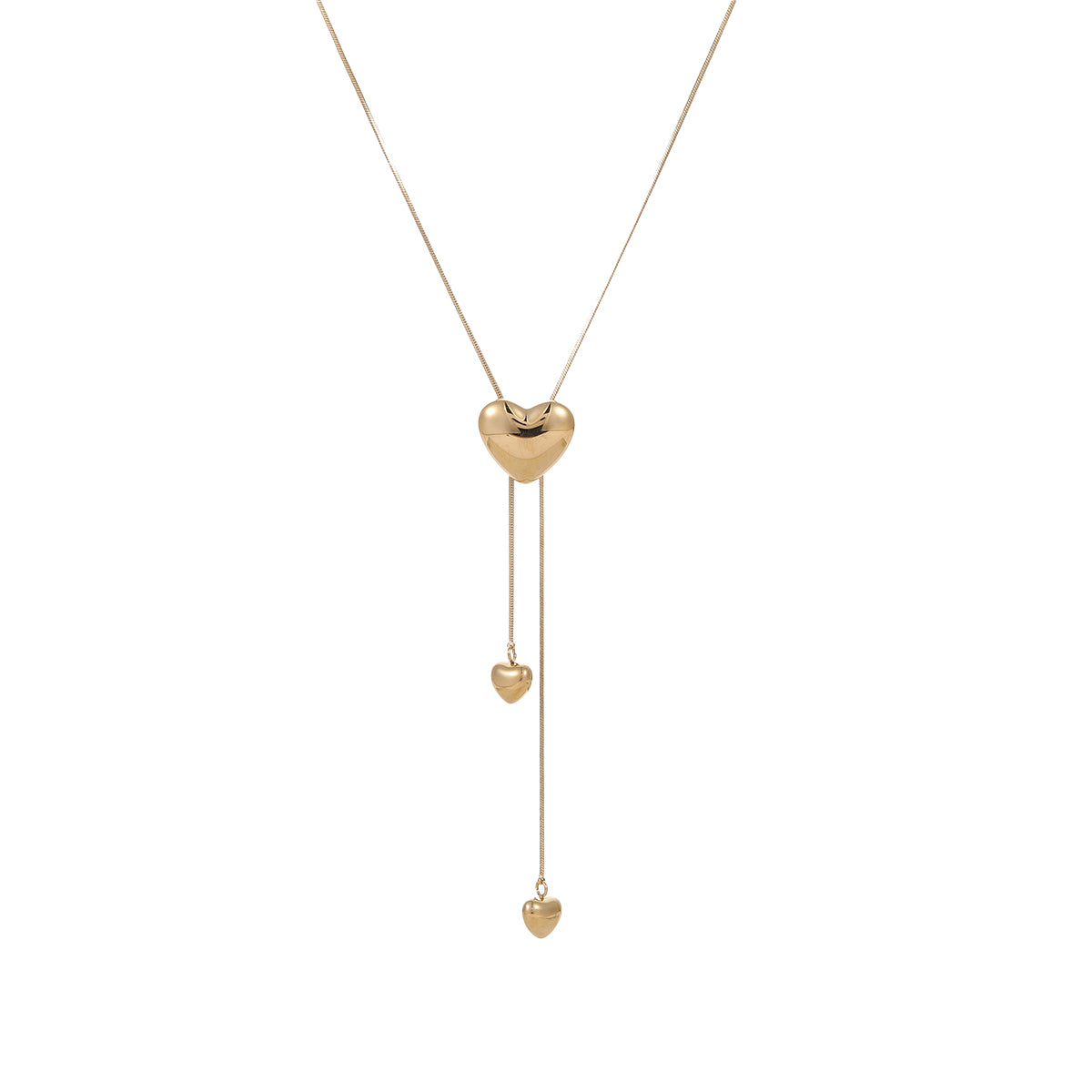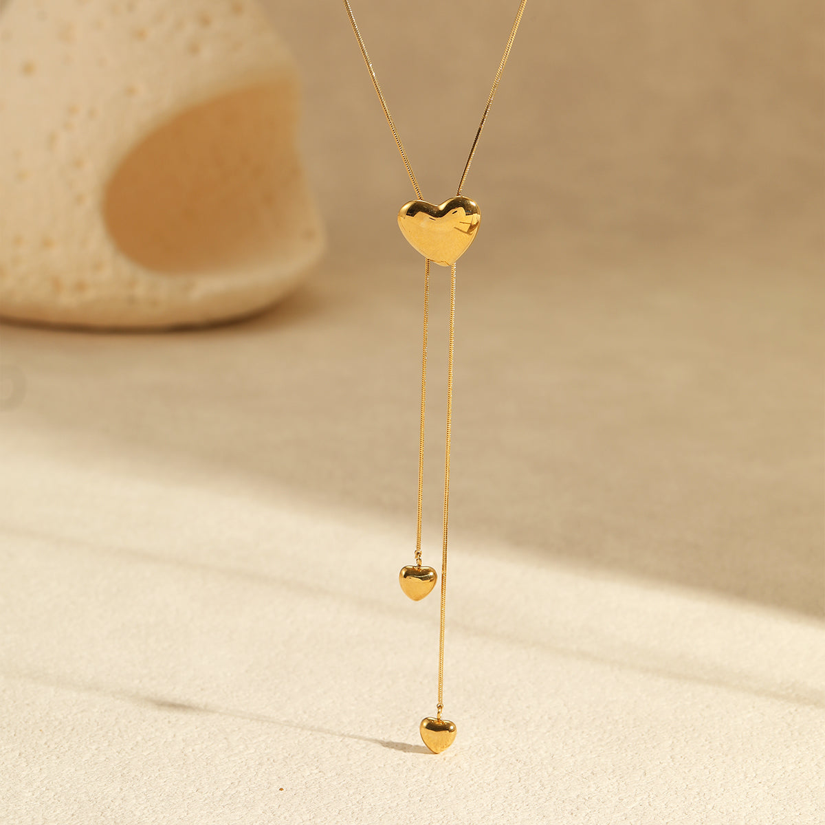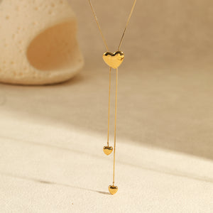 18K Gold Plated Stainless Steel Y Shaped Heart Drop Necklace